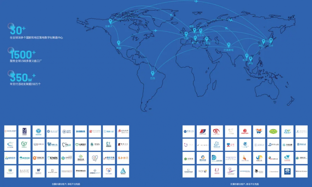 恒笑®超微熔覆义齿的背后,是铖联科技的全链路技术赋能。作为国家级专精特新“小巨人”企业,铖联科技构建了从材料研发、智能设备、工艺参数到临床支持的一体化数字智造体系,并依托覆盖全球的服务网络,确保每一颗恒笑义齿都具备稳定的高品质与可追溯性。