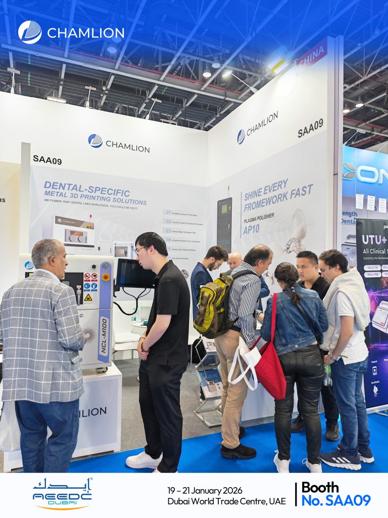 本次展会上,铖联科技最新桌面级金属3D打印机NCL-M100重磅亮相。NCL-M100专为中小型牙科工厂优化布局而生,灵活的产能和工业级的品质,是牙科工厂的得力助手。
