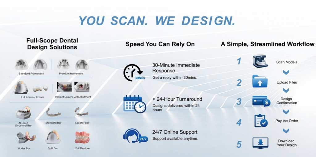 通过“设计 + 设备 + 服务”三位一体的服务模式,铖联科技帮助牙科实验室缩短设计周期,降低试错成本,真正实现从数据到成品的一站式转化。